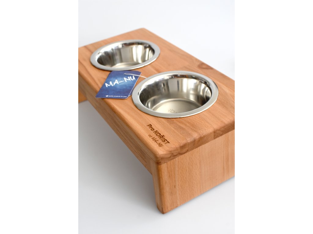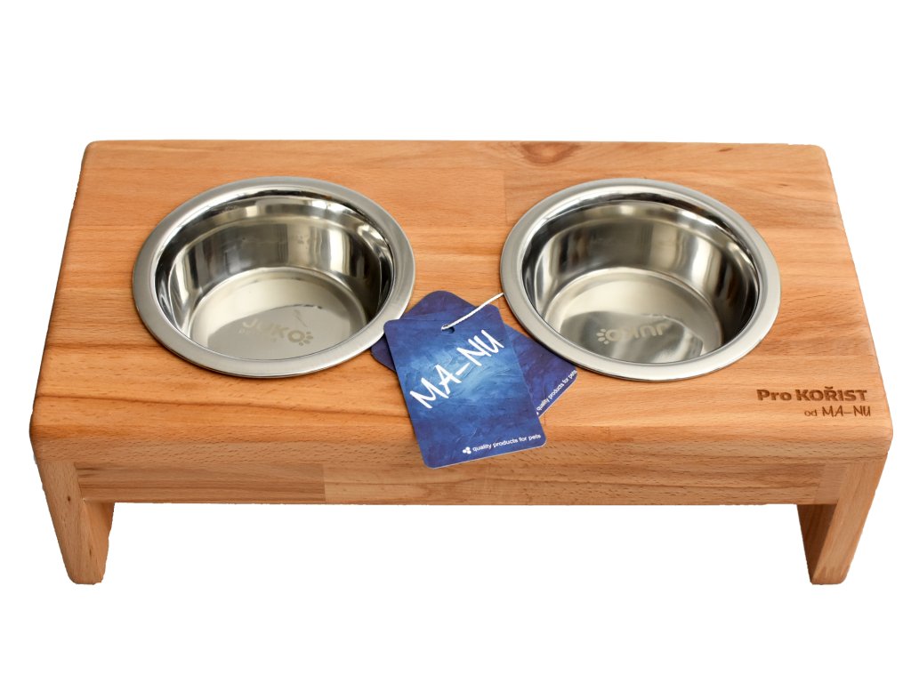 Vítejte ve světě prémiové péče o vaše čtyřnohé miláčky. Vyvýšené stojany na psí misky, známé také jako DogBary, vyrábíme ručně z kvalitního bukového dřeva, které se vyznačuje odolností a krásnou texturou. Každý DogBar natíráme kvalitním olejem s atestem nezávadnosti, čímž zajišťujeme elegantní vzhled, dlouhou životnost dřeva a bezpečnost. ČESKÁ RUČNÍ VÝROBA - pro značku Kořist vyrobeno v ma-nu.cz.