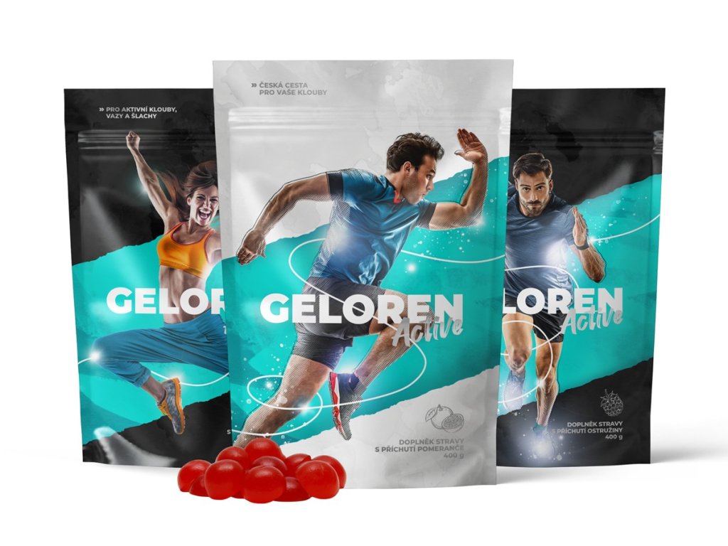 Geloren Active je doplněk stravy na klouby v podobě želé s vysokým obsahem látek pro výživu kloubů. Tato lidská kloubní výživa je v nabídce ve variantě s příchutí žlutého manga, červeného pomeranče nebo černé ostružiny. Tři balení obsahují celkem 270 ks želé.