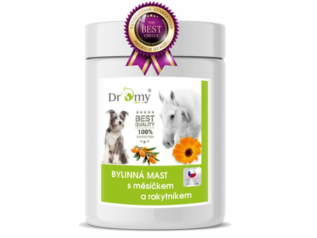 Bylinná mast určená k celoroční péči o pokožku koní, psů a koček.