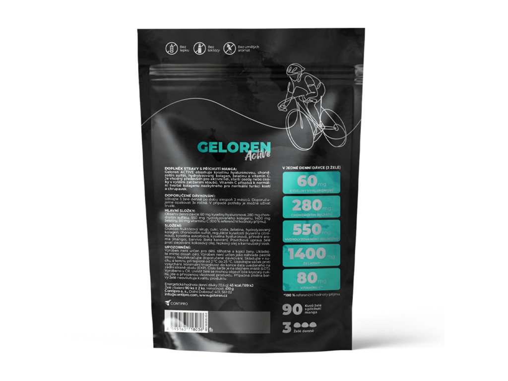 Geloren Active je doplněk stravy na klouby v podobě želé s vysokým obsahem látek pro výživu kloubů s příchutí manga. Balení obsahuje 90 ks želé.