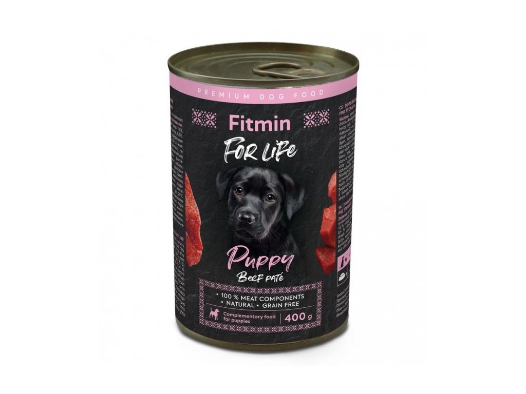 Nová receptura konzervy pro štěně Fitmin For Life. Hovězí konzerva pro štěňata v podobě paté je vyrobena z čerstvého masa a díky tomu si zachovává jedinečnou chuť. Je vhodná jako doplnění a oživení suchého krmiva. Je Vaše štěně aktivní? Skáče, běhá, aportuje a potřebuje větší příjem energie? Neváhejte mu dát ochutnat hovězí konzervu vyrobenou z čerstvého masa bez obsahu barviv, sóji, aromat a chemických dochucovadel. Díky šetrné přípravě zajišťuje masová konzerva zachování živin a vyvážený poměr vitamínů a minerálů. Díky tomu bude váš pes spokojený a plný energie. Konzervy jsou doplňkové krmivo.
